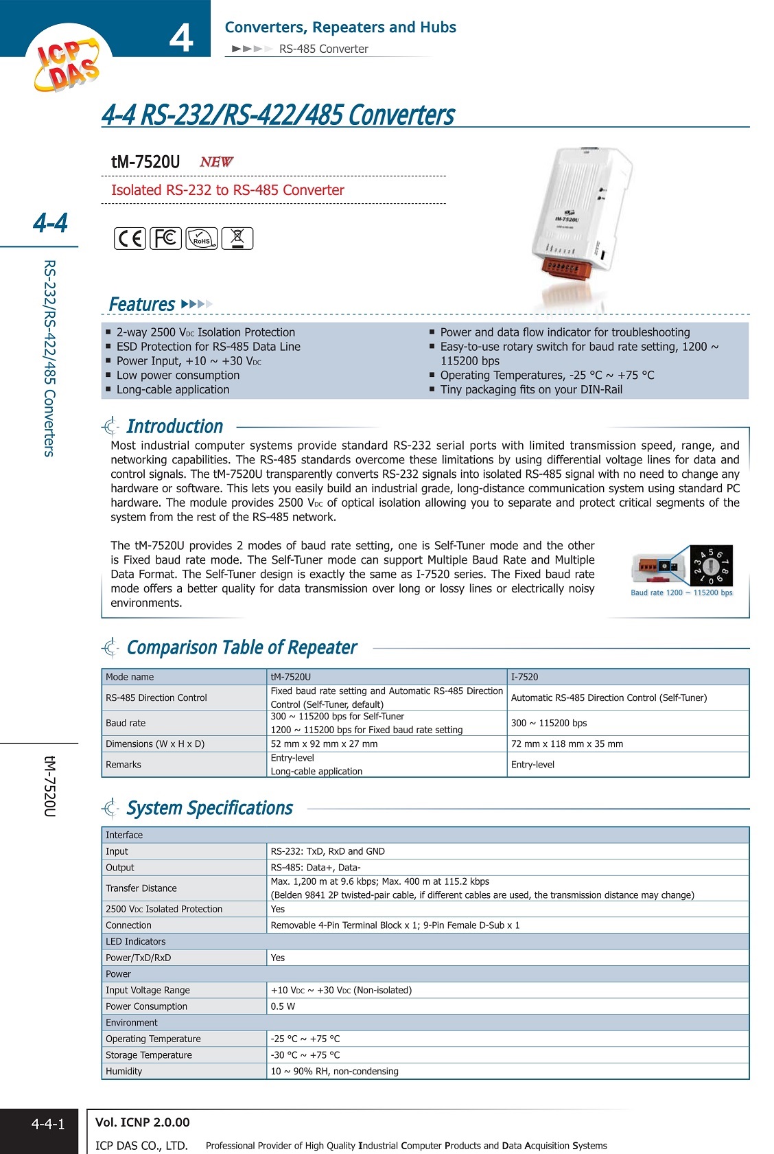 | • | Easy-to-use rotary switch for baud rate setting, 1200 ~ 115200 bps |