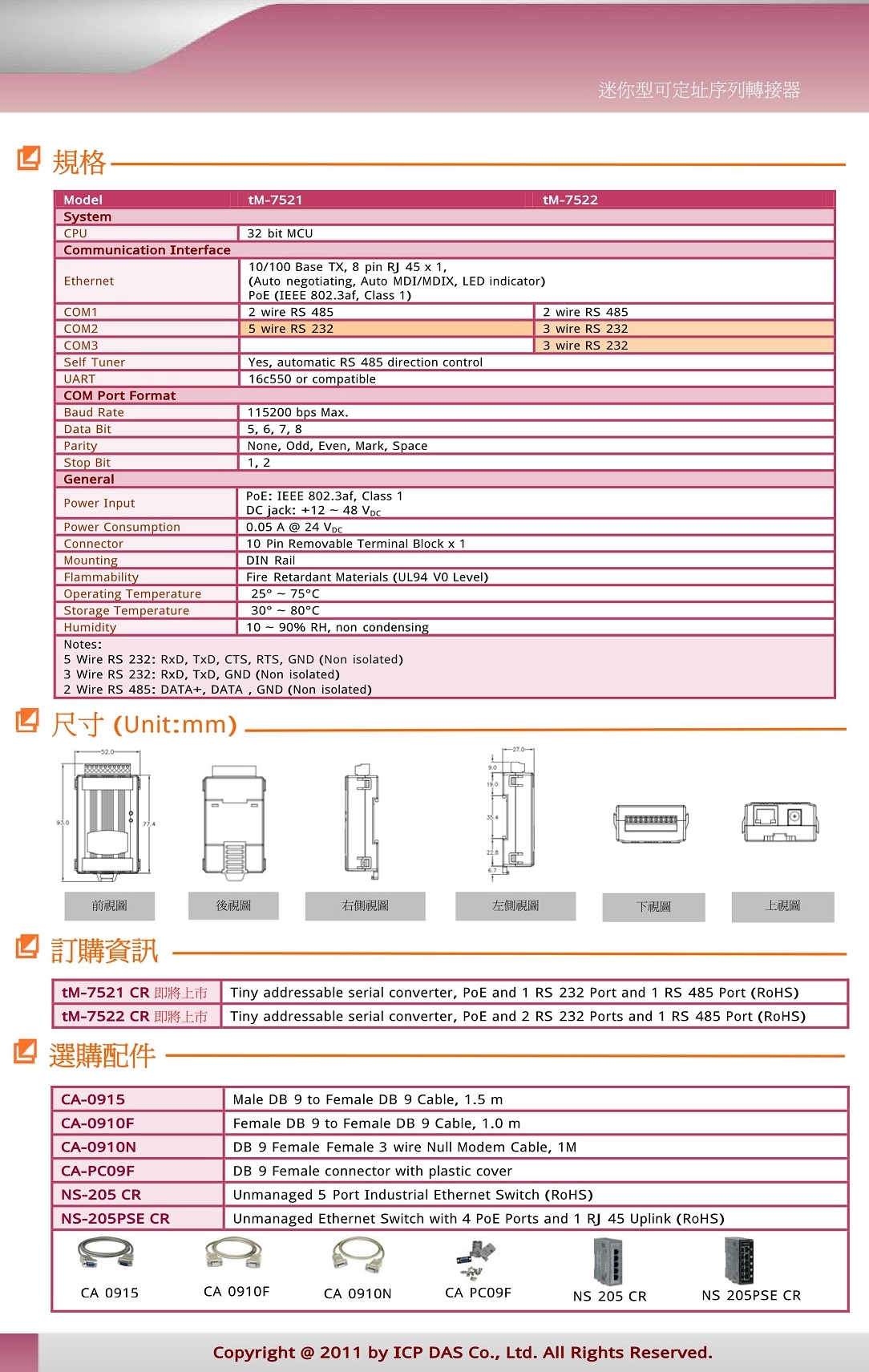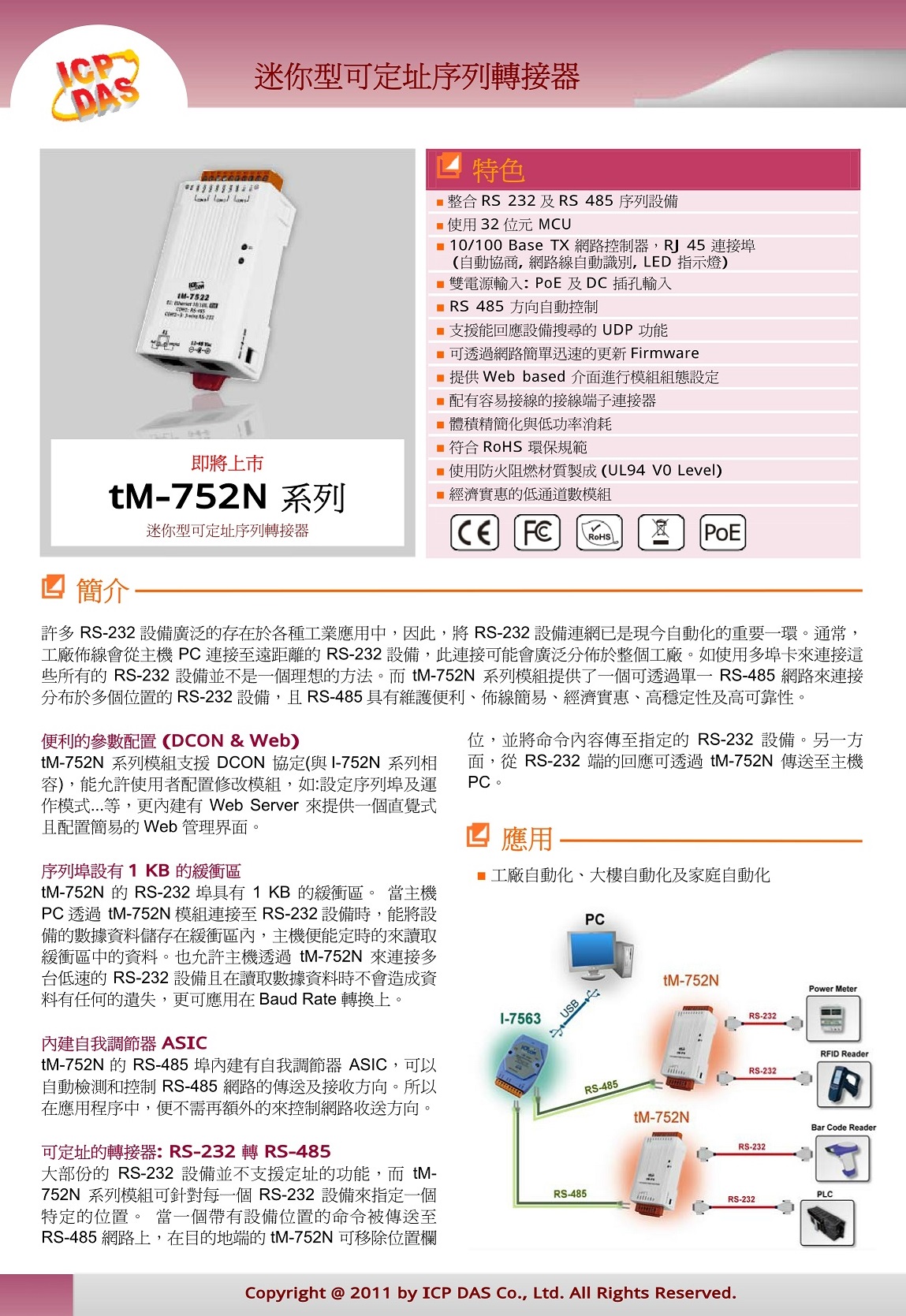 | • | 整合RS-232及RS-485 序列設備 |